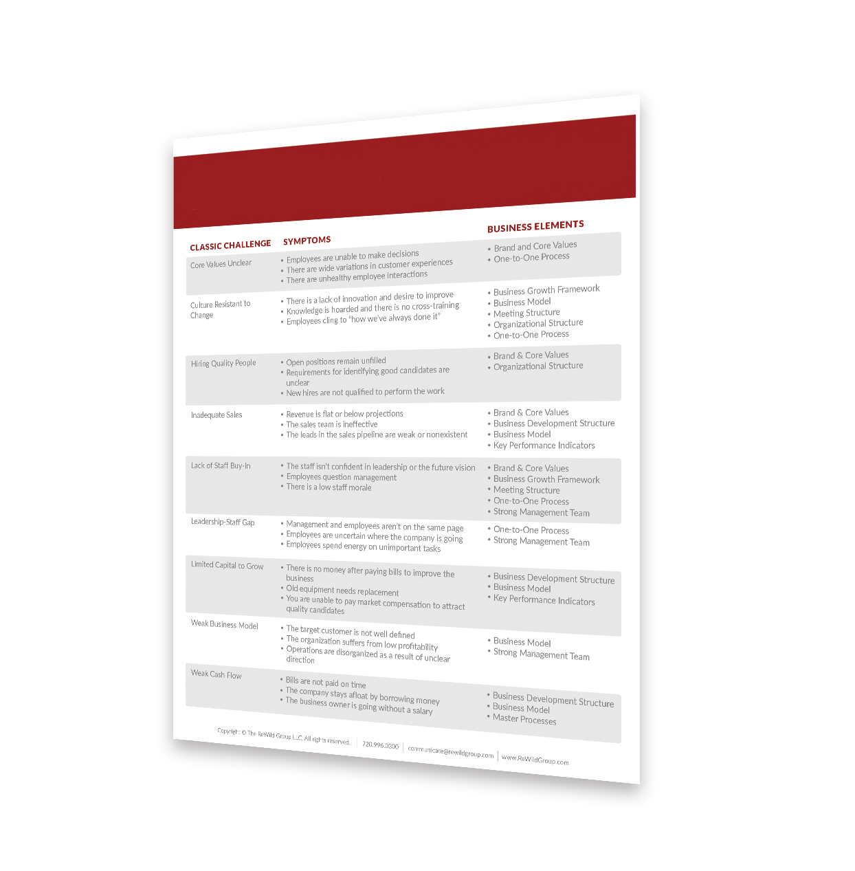 The Challenges of Growth Report gives business owners and leaders clarifying language and insight about the challenges they are wrestling with. The report also includes pointers on focusing your efforts.